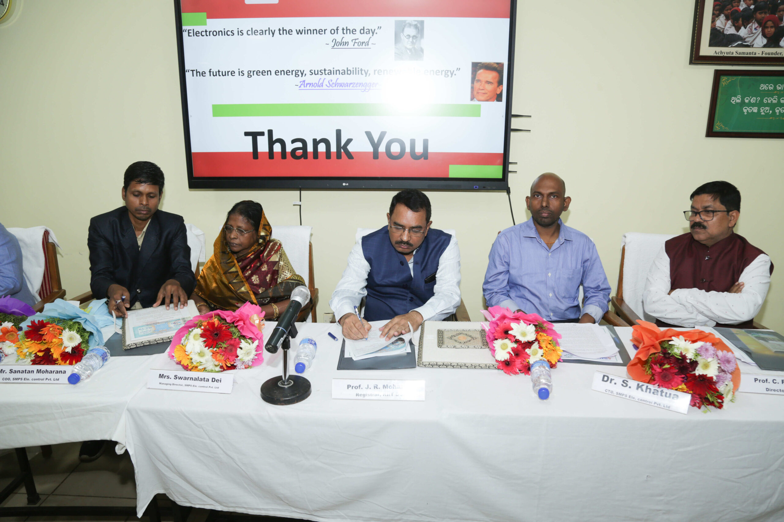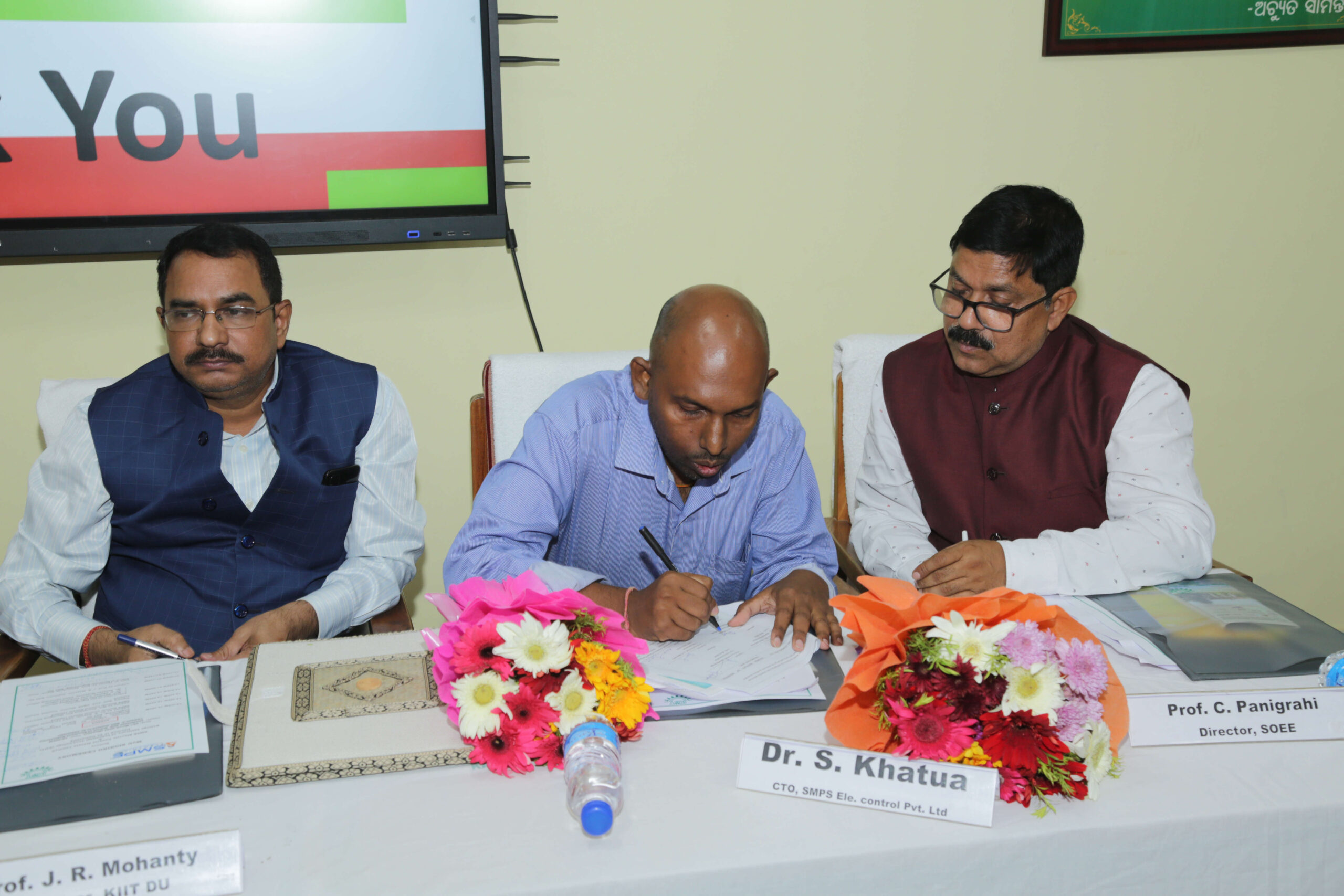 MoU signed with SMPS(Centre of Excellence) in KIIT School of Electrical Engineering, at Campus-3, KIIT Deemed to be University. The objective of the program is to make students of all interested branches industry fit before leaving the institutions in deep core tech areas like embedded system design, power electronics and semiconductor field. B.Tech and M.Tech students are advised to carry out the capstone projects in the lab. Several hands-on workshop can be organized to upgrade skills of teachers and students community. Industry elective courses can be designed as per the need of the industry such as smart power electronics, EV, IIOT,AI,ML,Industry 5.0 and Data science as elective subjects can be framed for B.Tech and M.Tech students. Esteemed Faculty members of School of Electrical Engineering present in the program are as follows: