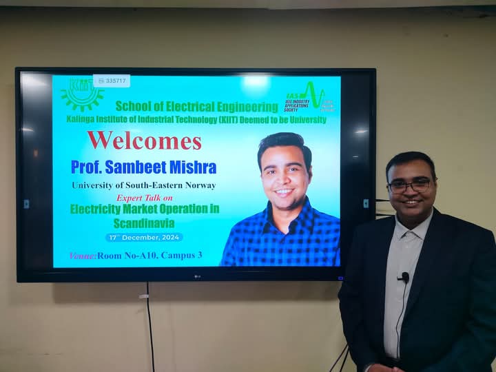 On 17th December 2024, the School of Electrical Engineering, KIIT had the privilege of hosting an engaging guest lecture by Dr. Sambeet Mishra from the University of Southeast Norway. Dr. Sambeet Mishra is our proud alumnus who has completed both his B. Tech and M. Tech from School of Electrical Engineering, KIIT. The topic of the session, Electricity Market Operation in Scandinavia, offered invaluable insights into real-time electricity market operations and the challenges of managing dynamic electricity markets.