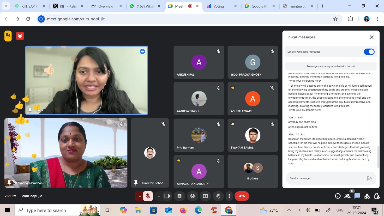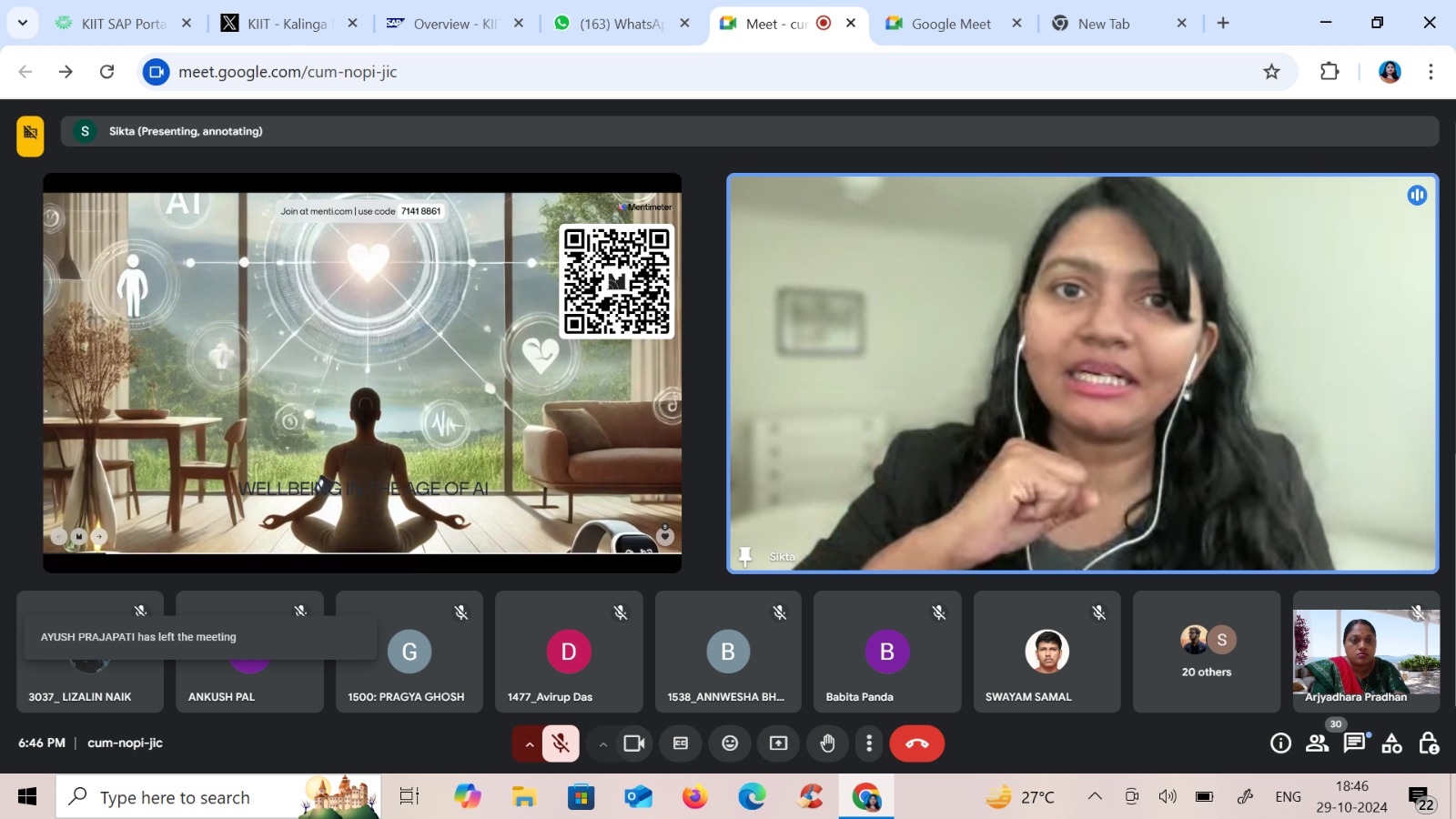 Ms. Sikta discussed about the uses of AI techniques and explained well the difference between human efficiency and machine efficiency. She clearly stated AI can make our work more organised and faster. She conducted various activities using mentee.com platform. Students were involved in the activities and highly appreciated the way she explained how to manage our life style.