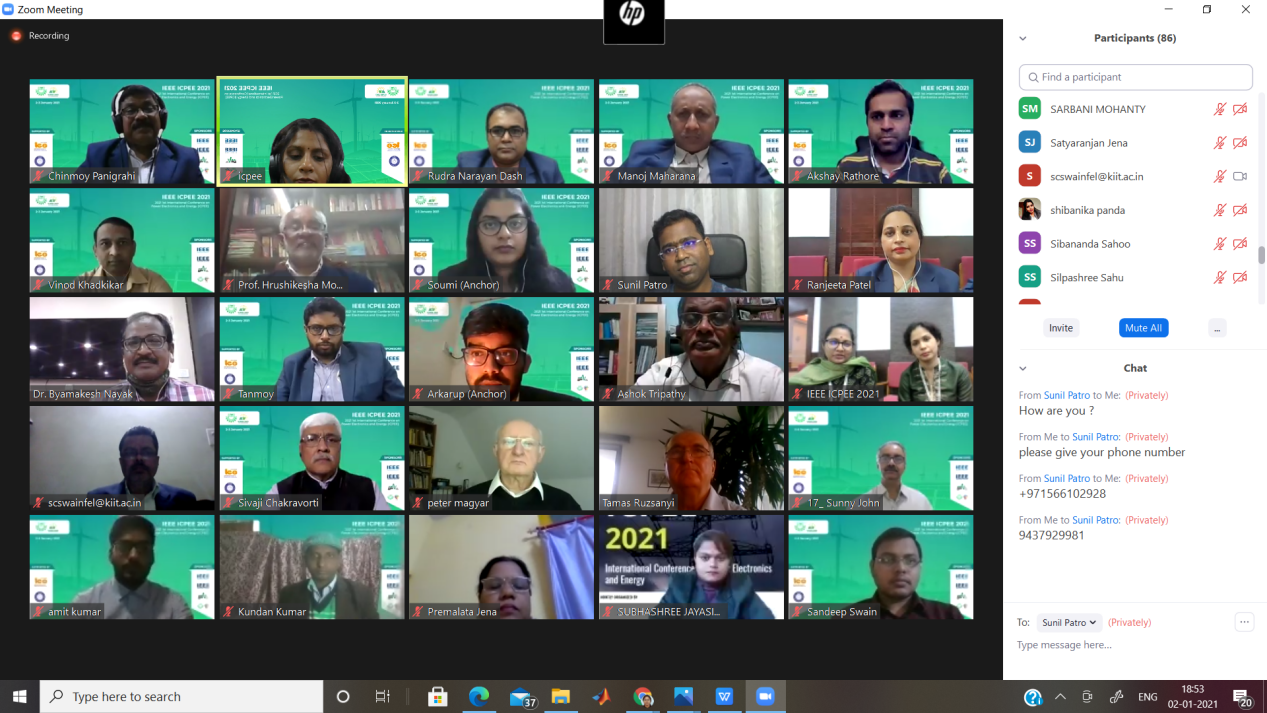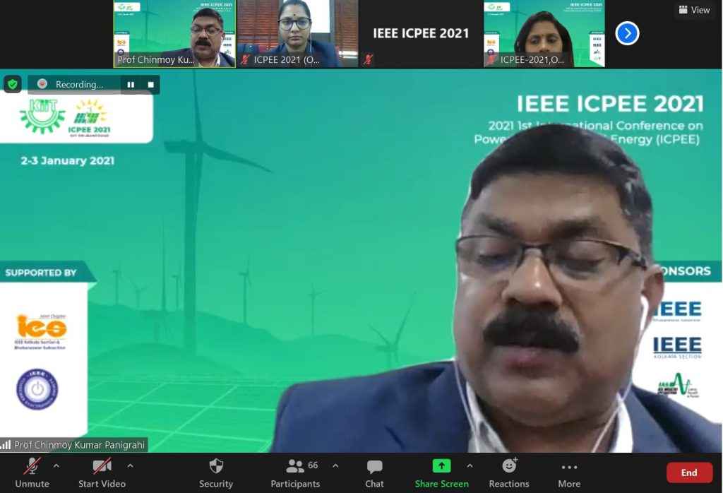 KIIT School of Electrical Engineering, in association with IEEE Bhubaneswar Sub Section with technical co-sponsorship by IEEE, Kolkata Section and IEEE Industry Applications Society, organized 1st International Conference on Power Electronics and Energy (ICPEE-2021) on virtual mode during the 2nd and 3rd January 2021. The theme of the conference was ‘Energy Control for Sustainable Development’.