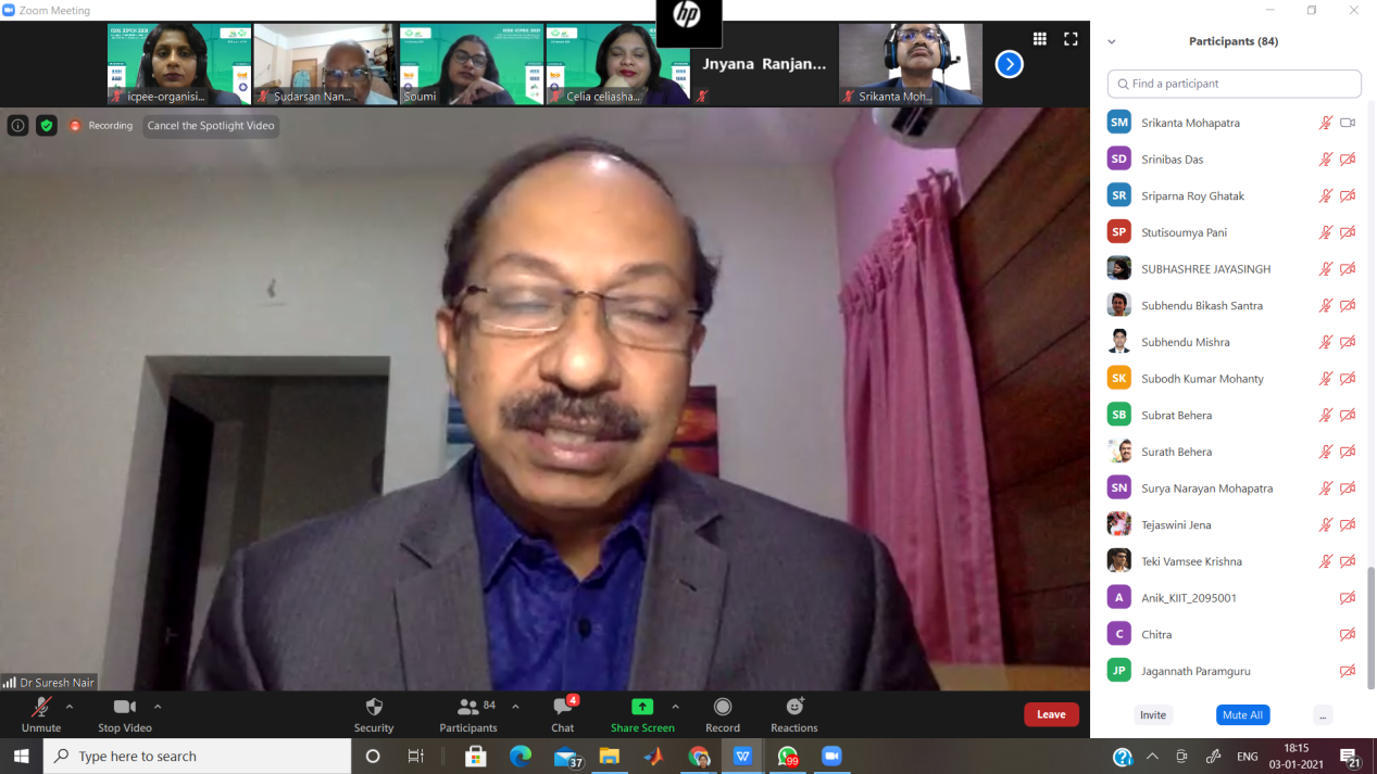 Prof. Chinmoy Kumar Panigrahi, General Chair, ICPEE-2021 (Professor, SoEE, KIIT) welcomed the dignitaries and participants, while Prof. Ranjeeta Patel, Organizing Secretary, ICPEE, 2021 (Faculty, SoEE, KIIT) proposed the vote of thanks. The e-proceedings of the conference were also released on the occasion.