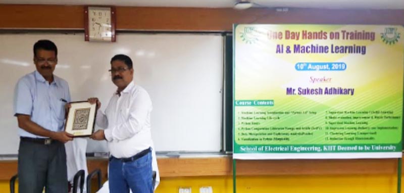 School of Electrical Engineering Conducted One day hands on Training on Artificial Intelligence and Machine Learning on 10th August, 2019.Mr. Sukesh Adhikary was the keynote speaker. He explained various AI techniques, Python etc. Near about 60 students participated in this programme.