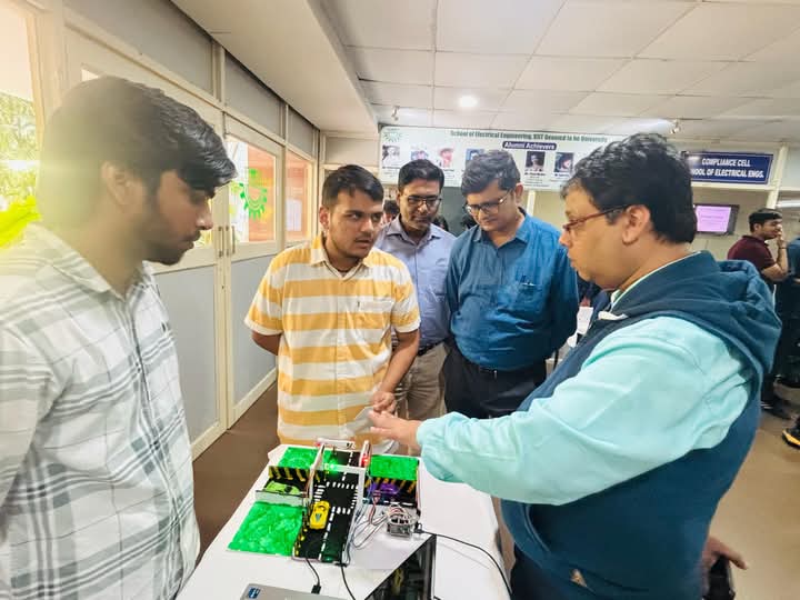 The highlight of the event was the presentation of innovative projects to an esteemed panel of judges, including Hemanta Kumar Rath, Principal Scientist and Distinguished Engineer at TCS Research, Bhubaneswar; Dr. Ranjeet Patel, Dean of the School of Electrical Engineering; Prof. C.K. Panigrahi, Director of the School of Electrical Engineering; and Prof. Subhrat Behera, Associate Dean of Training & Placement. Each project was evaluated not only on its technical depth but also on clarity of presentation, effectiveness in communicating complex concepts, and real-world applicability.