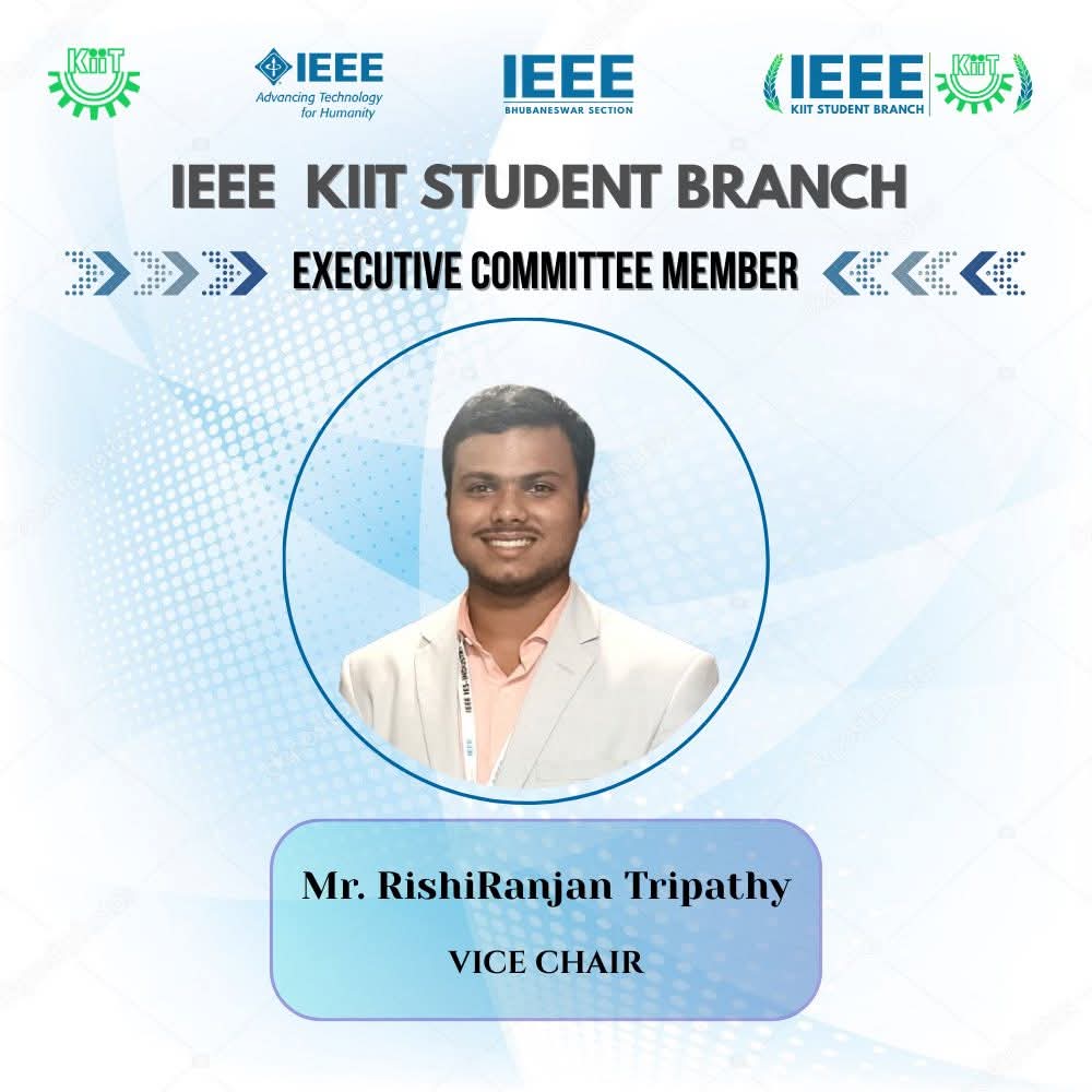 Rishi Ranjan Tripathy has been selected as the Vice Chair of IEEE KIIT Student Branch. This opportunity marks a new chapter in his journey with IEEE, and he looks forward to contributing towards fostering innovation, collaboration, and leadership within our community.