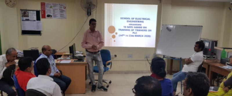 School of Electrical Engineering conducted ten days training programme on PLC for the trainers from 14th March to 23rd March, 2020. In this in-house training programme both faculties and technical assistant participated. Prof Subhro Debdas very nicely explained the working of PLC with lot of examples and hands on practice.
