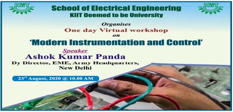 The School of Electrical Engineering, KIIT Deemed to be University organized  a Virtual Workshop on ‘Modern Instrumentation and Control’ on 23rd  August 2020.The Resource Person, Mr. Ashok Kumar Panda, Dy. Director, EME Army Headquarters, New Delhi emphasized on the basics of Modern Instrumentation and Control. He conducted a participatory discussion on the emerging opportunities for the fresh graduates and students’ readiness to fulfill the industry requirements.